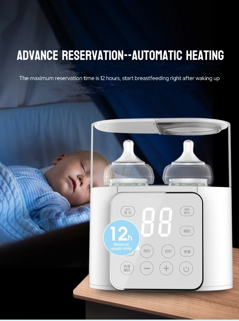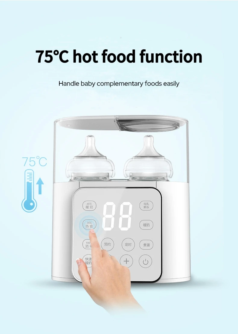 This all-in-one baby bottle warmer makes feeding effortless with fast milk heating, sterilization, food warming, defrosting, and keep-warm functions. Designed for modern parents, it delivers accurate temperature control and a gentle, nutrient-preserving warming process for newborns and infants.